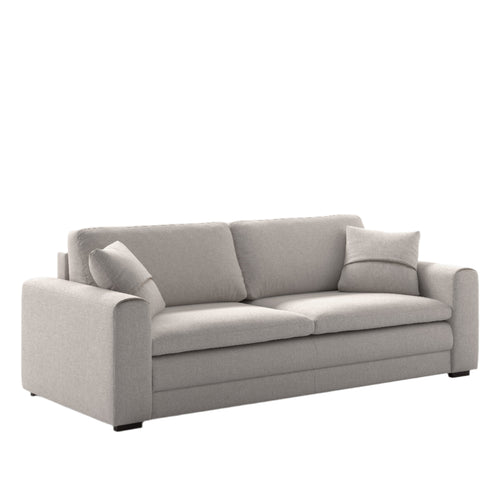 The Cove King Sleeper Sofa is a contemporary sofa bed that features a low leg design with pillow top seat cushions. It easily converts into a King size bed. Includes two decoration cushions. Made in Finland.