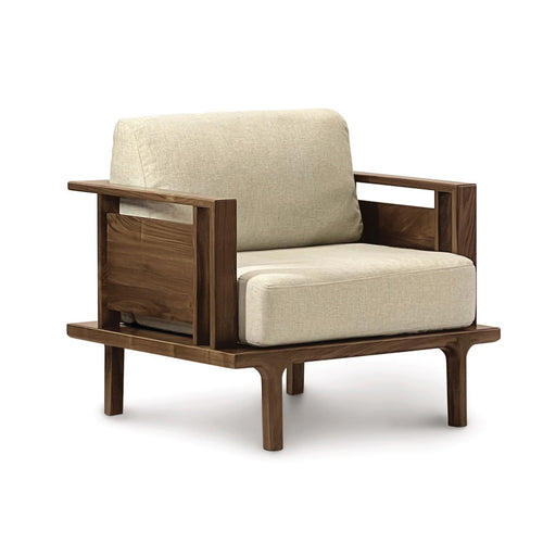 The Sierra Chair. Soft contemporary styling and precision woodworking come together in Sierra to produce a versatile living room collection that is easy to incorporate into any home. Available as a loveseat and sofa, the collection also includes an assortment of coordinated occasional tables for a cohesive living environment. Sierra Seating and Occasional Tables are crafted in solid Cherry, Oak, or Walnut and is available in a range of microsuedes, fabrics and Sunbrella well as COM (customer’s own material). The finish is GREENGUARD Certified for low chemical emissions. Proudly made in Vermont, USA.