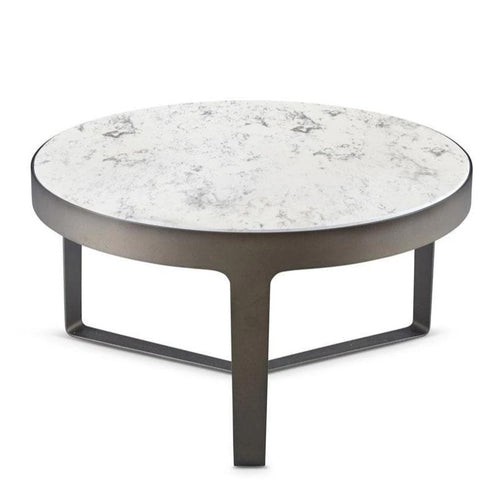 Thea offers a sleek surface atop a simple, streamlined powder coat steel base frame with a circular Quartz top. The circular shape spans the spectrum from traditional to modern. What fits better into rooms both classic and contemporary than cool, clean quartz top? Fashionable, Durable, premium quality and maintenance free. It is the perfect complement to any Modern Living space. Complete the look with the Side Table!